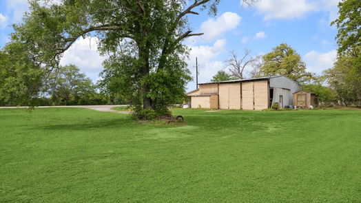 2.6 acres of UNRESTRICTED land with road frontage and entrances on Jingles Road and Highway 159 near Hempstead giving this current residential use property unlimited commercial potential. 3 phase electric is available at front corner of property on Highway 159, per FEMA no floodplain, and no pipelines. A 3/2 1994 manufactured home with the addition of an enclosed porch which offers extra storage, is situated behind the shop building with living quarters which are in need of repair, and a small storage building. Mature trees and fertile soil (Seller has had a large productive garden) complete this property.