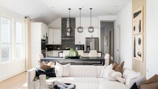 This Doucette floor plan with a 4-bedroom, 3-bathroom home offers 2,517 square feet of stylish living space. The open floor plan seamlessly connects the living, dining, and kitchen areas, perfect for modern living and entertaining. The chef-inspired kitchen features a large island and ample storage. The owner's suite is a true retreat, highlighted by squared bay windows that fill the room with natural light. The en-suite bathroom offers a luxurious spa shower with dual showerheads, elegant tilework, and dual vanities, creating a spa-like experience. A spacious walk-in closet completes the suite. Three additional bedrooms and two full bathrooms provide plenty of space for family or guests. A two-car garage and private backyard enhance the home’s appeal, combining comfort and sophistication in every detail.