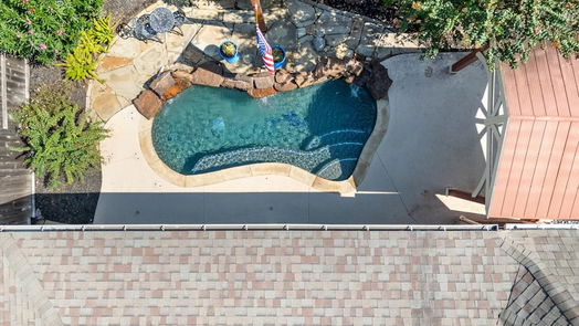 Gorgeous two-story home in a manned, gated community! Entertain day or night in the custom outdoor space which includes a heated, saltwater pool and extended covered patio with an outdoor kitchen and two additional covered seating areas. The property includes a full-home generator, water softener, and solar panels (all owned). This home has the best of both worlds with a spacious floorplan that includes a sprawling primary ensuite and bedroom with double doors that open to the patio. The kitchen, breakfast room, and living room are great for socializing! A decorator's delight, this home includes a formal living and dining room with updated lighting and woodwork. The second floor has four bedrooms, a pre-wired media room, and a gameroom/loft space. Even the garage is a must-see with epoxied floors, built-in storage and counters, and a mirrored wall for fitness activities!