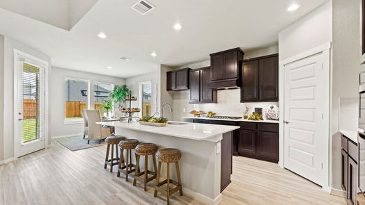 Newly built home in Harvest Green with a modern kitchen and inviting outdoor space.