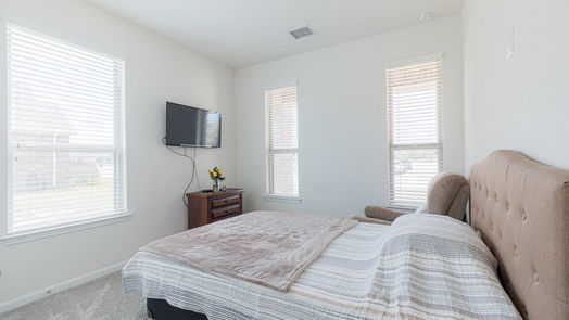 Welcome to this beautiful 4-bedroom, 3-bath home w/2-car garage & the added privacy of no back neighbors. As you approach, you'll be greeted by a charming covered front patio, perfect for enjoying morning coffee or evening relaxation. The main floor has a spacious guest bedroom w/an adjacent full bath, ideal for visitors or a home office. The family room w/tile flooring seamlessly connects to the kitchen & dining area, creating an open space for entertaining. The kitchen has granite counters, stainless steel appliances, built-in desk & recessed lighting. Venture upstairs to discover a large game room, perfect for play. The upstairs also has 3 additional bedrooms, including the spacious primary suite. The primary suite offers a large walk-in closet, double sinks & spacious walk-in shower. The backyard is private (NO back neighbors) w/a covered back patio, perfect for outdoor dining & relaxation. Easy access to I-10, making commuting a breeze while maintaining a peaceful suburban feel.