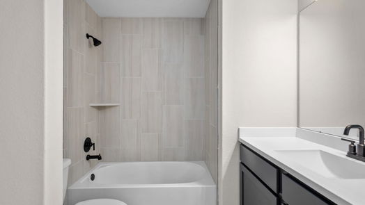 This two-story home filled with space is the Marquette by LGI Homes. The open layout showcases a large kitchen that opens into the spacious family room and formal dining room. The master bedroom is located on the first floor leaving the remaining three bedrooms on the second floor. One of the three bedrooms upstairs features an en-suite bathroom. A beautiful feature of this home is the three big windows in the family room that look into the backyard and the large, covered patio. In addition to beautiful homes, Lago Mar offers its residents incredible on-site amenities, including a 12-acre Crystal Lagoon, a playground, and a splash pad.