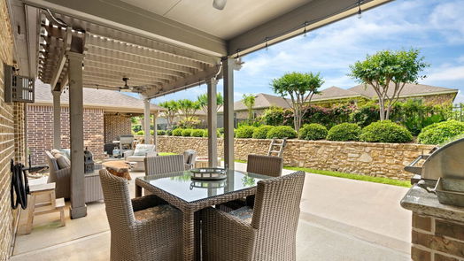 3BR/3BA Abbeyville, former model w/magical Sunrm, plantation shutters, loft w/media rm & professional landscaping is patio ready for TX sunsets! Off the Foyer resides Guest BR & full Guest BA, while steps away French doors introduce Study w/brick accent wall where windows add rich natural lighting. Ahead, a spacious Great Rm w/stacked stone FP open to Ild Kit & DR w/Granite counters, undercabinet lighting & SS apls including raised dishwasher outfit the Kit, w/pull outs & Rev-A-Self drawer organizers & wire racks for pots & pans.The sunrm is a wonderful space for reading & entertaining. Quietly located at rear of home, the Primary BR, where more lg windows view pergola & gas firepit. The ensuite Primary BA hosts a choice of tub or shower w/bench & dual vanities & custom master closet system. Built in MUD bench. Garage boasts extra storage complete w/pull-down stairs. An abundance of storage opportunities & smart hm devices throughout. Full house Generator & built in gas grill on patio.