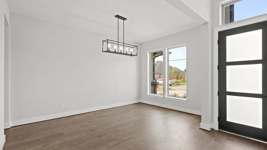 Welcome to this stunning 5-bedroom home with a game room, media, and 3 car tandem garage. As you enter, you'll be greeted by a very open foyer, wood staircase and a full view of the family room and the spectacular wall of windows. The main level boasts 2 spacious bedrooms, providing convenience and versatility. A study offers a perfect space for work or relaxation and the double door entry makes a striking first impression. The kitchen is a chef's dream with pendant lights, custom cabinets, double oven and porcelain counters. Also includes a butlers pantry with additional cabinetry. 8 ft doors on the first level and stacked cabinets create a custom look. The main bathroom features a free-standing tub for relaxation. Large covered patio reveals the privacy of no back neighbors. Lamar ISD offers top schools and Fulbrook is a desirable and relaxed community. This home offers a perfect blend of modern aesthetics and practical design.