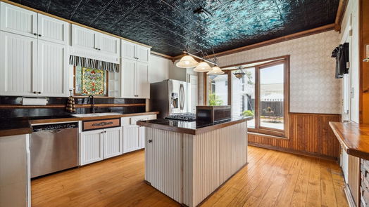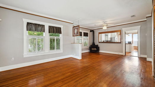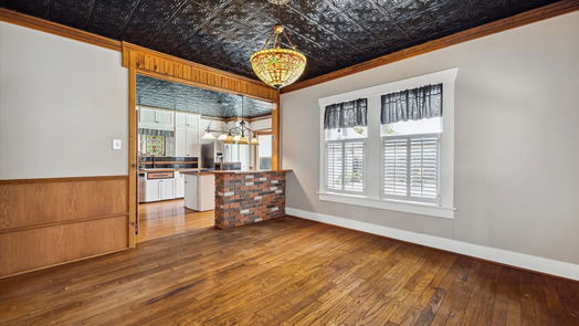 Nestled in the heart of Houston Heights, this classic home offers timeless charm & modern amenities. The inviting front porch sets the stage for what awaits inside. On the first floor, rich wood floors lead to a spacious living area that seamlessly transitions between formal & casual settings. An adjacent nook serves as an ideal home office space. The open kitchen & dining area, inspired by New Orleans design, features striking black tin ceilings & a bay window overlooking the private pool. Upstairs, three bedrooms provide comfortable retreats, including one cleverly designed to double as two separate rooms. An additional room offers flexibility as an office or guest quarters. Outside, the backyard oasis beckons with a heated pool, outdoor bathroom, storage room, & playhouse. A one-car garage, accessed from the alleyway, adds convenience. Plus, the home is equipped with a Generac generator for added peace of mind. Welcome to the epitome of Heights living.
