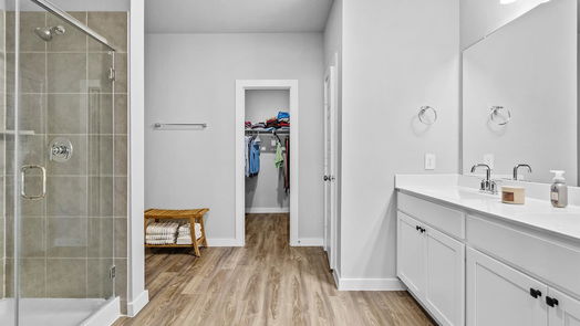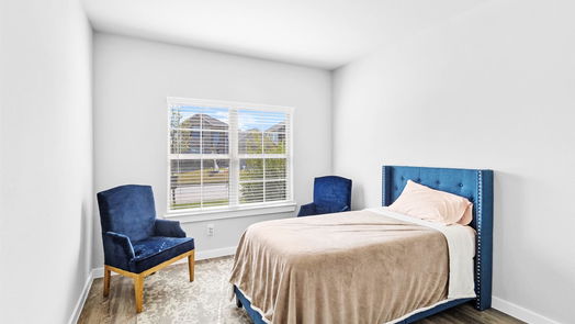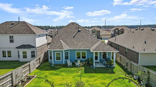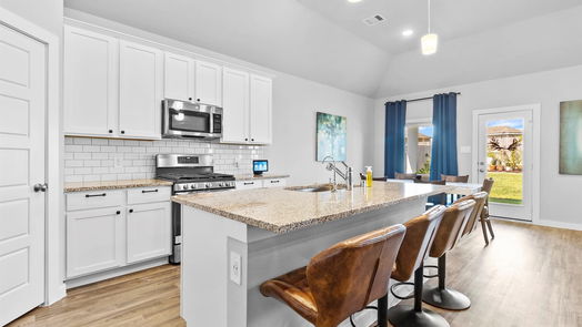 Welcome to this beautifully maintained 4-bed, 3-bath home in the desirable Magnolia Ridge Forest, a vibrant new build community with a park, splash pad, and covered pavilion. This home offers an open floor plan with high ceilings, filling the space with natural light and creating a welcoming atmosphere. The chef’s kitchen features a large center island, granite countertops, and a pantry. Enjoy spacious bedrooms, including a downstairs guest suite with a full bath. A dedicated home office provides work-from-home convenience, and the bonus room upstairs is perfect for a second living area or game room. Outdoors, relax in the private backyard with a covered patio, low-voltage lighting, Rainbird irrigation, and full gutters. Plus, the home is equipped with a 50-amp inlet for a generator and a natural gas quick connect for power outages. This move-in-ready home offers comfort, style, and modern living. Schedule a showing today or take the 3D tour! Motivated Seller!
