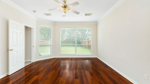 Impressive describes this lovely 4 bdrm, 3.5 bath home nestled in the heart of the executive community of Waterford Park w/easy access to membership at the Northgate Country Club! The sellers have taken exceptional care of this beautiful home! Settle into this warm space featuring a stunning brick & stone exterior, leaded glass front door, lovely open floor plan, high ceilings, custom archways, crown molding, glistening wood floors, formal dining, office, game room, & spacious family room w/ cozy fireplace! This impressive property also features a spacious primary suite w/ walk-in closet, separate shower & tub. Settle into the open kitchen w/gas range & breakfast nook, 3 car detached garage, & large fully fenced back yard! Enjoy this executive community, complete w/ neighborhood pond, lovely walking & biking trails, easy access to membership at the Northgate Country Club, & close proximity to the School of Science & Technology, Downtown, The Woodlands, & IAH airport!