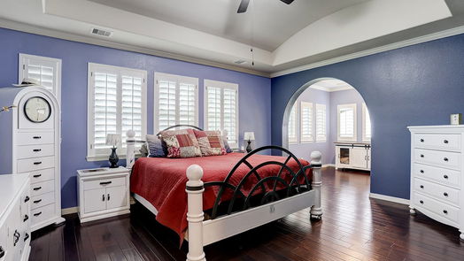 This stunning waterfront home boasts 5 bedrooms and 4.5 baths, featuring a deluxe kitchen with a double oven and Sub-Zero fridge. Plantation shutters adorn the windows, adding a touch of sophistication. The main level includes a formal dining area, stylish study, and a unique second suite with a full bath and front patio access. The master suite offers a cozy sitting area and a luxurious bathroom with dual vanities, a soaking tub, and separate shower. Upstairs, a spacious game room awaits with surround sound connectivity and provisions for a wet bar. Outside, a serene patio overlooks the creek, while a walk-in attic provides ample storage. This home blends practicality with opulence, offering comfort and refinement. Situated in a private gated section of Weston Lakes, residents benefit from a golf cart path to the clubhouse and golf course, ensuring convenient access. This property epitomizes luxury living, combining elegant design with functional amenities for an exceptional lifestyle
