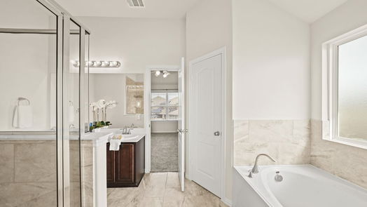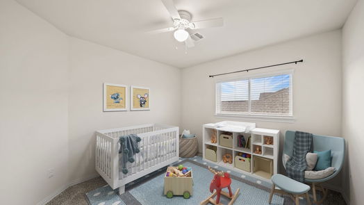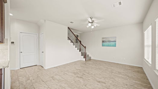 With quick access to the Westpark Tollway & I-10, this energy efficient Anglia Homes Coventry plan is zoned to Fulshear High School & features a radiant barrier, PEX plumbing, tankless water heater & double pane windows. With ceramic tile floors throughout the living areas the foyer opens to formal dining and spacious living room with wrought iron staircase & windows overlooking the backyard. Gourmet kitchen with an abundance of cabinets touts granite counters & tiled back splash with under-cabinet lighting, Whirlpool appliances including a 4-burner gas range & refrigerator stays. Cheery breakfast room has bay window & glass door to backyard. Owner’s suite w/private bath features dual sinks, garden tub, walk-in tiled shower, vanity & spacious closet. Secondary bedroom has en suite bath & additional bedrooms have access to a third full bath & nearby utility room. Oversized fenced backyard is perfect for child/pet play. Amenities include a resort-style pool, splash pad & playground!