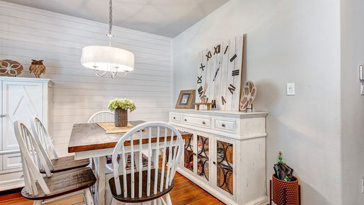 This beautifully upgraded 3-bedroom, 2.5-bath Walden home is ideally located within walking distance of Madeley Ranch Elementary and Walden Golf Club. The practical use of space and luxurious features make it a standout property. Downstairs, ceramic wood tile flooring complements neutral paint and shiplap accents. The open-concept kitchen boasts stunning light granite countertops and white cabinets, perfect for entertaining. Plantation shutters throughout add a touch of farmhouse charm. The primary bedroom suite offers ample space, a large closet, a whirlpool tub and a separate shower. Upstairs features laminate wood floors, a spacious game room, two secondary bedrooms and a fully updated bath. The backyard provides plenty of space for a play set, trampoline, or pets, while the oversized lot includes a half-court basketball goal without sacrificing driveway parking. Additional features include Reme Halo Air Filtration, Culligan Water Filtration system and whole home generator hookup.