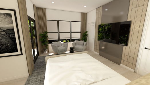 Brand new modern home in Houston with 3 bedrooms, 3.5 bathrooms, attached 2-car garage, and balcony.