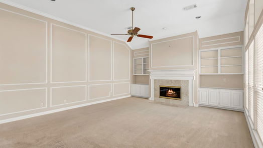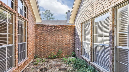 Never Flooded! Gorgeous Patio home w/incredible curb appeal! Open concept floor plan w/elegance and charm. Easy to maintain gated entry into inviting side entry. Fresh paint colors & selections through/ Very spacious & popular Village Builder patio home provides a traditional or contemporary style! Solid wood/beveled glass door/paver covered entry/sprinkler system/Wood blinds and specialty lighting. ALL Brick exterior. Open Living Room w/stately gas log fireplace with tile accent boarder. Stunning Formal Dining/Foyer w/lovely view of atrium. FRENCH DOORS lead into private study, second living space or even an extra bedroom w/custom built-ins & desk area. Gourmet island kitchen boasts white painted cabinetry galore, designer tile floors, granite, tile backsplash, glasstop cooktop & updated appliances. Beautiful primary suite & lovely large bathroom, free standing tub, white cabinets/big closets. No flooding. Privacy is key! Backyard is the perfect sitting area, out on the deck.