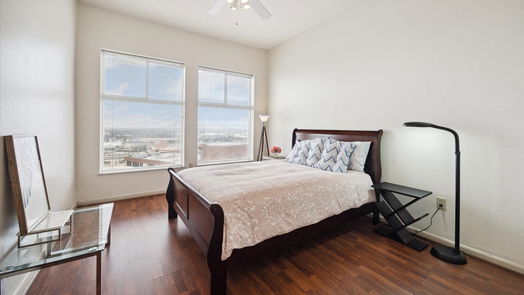 Luxury living in the Galleria area. Beautiful views of downtown, Galleria & Texas Medical Center. Split unit has soaring ceilings, island kitchen with stainless steel appliances opens to both living & dining. Granite counters, tile & laminate flooring, blinds, full sized washer & dryer. Both bedrooms have large walk-in closets with abundant storage. 24 hour concierge, business center, library/party room reservable for private parties pool with grills for barbequing, on site building management.