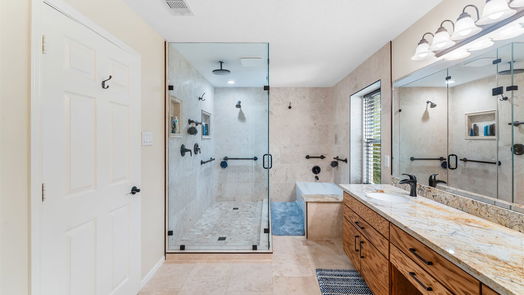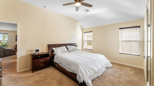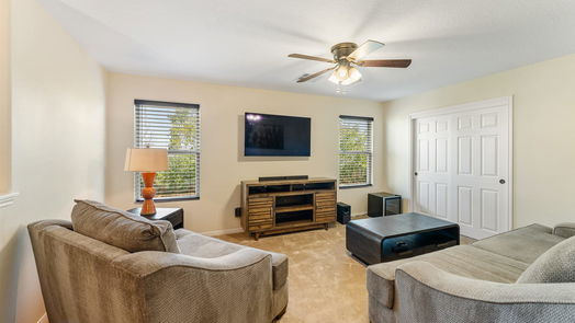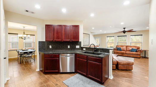 This stunning 5-bedroom home is super spacious and packed with upgrades! The entryway features a covered walkway and an elegant leaded glass entry door. Inside, you'll find wood-look tile flooring throughout much of the downstairs. The kitchen boasts a raised breakfast bar, farm-style sink, and high-end appliances, including a gas stove, microwave, and dishwasher. The adjoining family room is perfect for entertaining, with recessed lighting and ample space for a large TV. There's also a bedroom and a full bathroom on the main level. Upstairs, the primary suite and three additional bedrooms are complemented by a Huge game room. Energy-efficient features include double-pane windows, a radiant barrier and ceiling fans in the bedrooms. This home also now features a brand-new concrete back patio, a newly installed fence, a new roof and 2” blinds throughout the home.