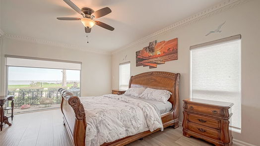 Discover waterfront living in the golf cart-friendly community of Shore Acres overlooking Galveston Bay. This meticulously upgraded home features 3 bedrooms, each with its own ensuite bathroom, alongside a host of enhancements including updated landscaping, 6-inch gutters with leaf guards, a new 6-foot cedar fence, and a circular driveway with a private gate. All 3 A/C units including ductwork were replaced in 2022. Newly replaced windows and industrial-grade picture windows with custom window coverings offer an abundance of natural light and Bay views. Inside find updated lighting, new paint, elevator, water softener, tankless water heater, with new tile floors on the first floor and LVP flooring on the second. The detached 2-car garage houses an unfinished 1-bedroom apartment with utilities installed, offering potential for personalization. Located near the Houston Yacht Club, this home is a perfect sanctuary for those seeking the waterfront lifestyle.