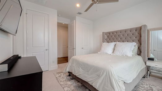 Welcome to your dream home in the vibrant East Downtown community, featuring timeless brick architecture. This luxurious residence boasts an elevator capable design with ample storage space. The expansive second-floor balcony measuring approximately 8' x 20', offers the perfect outdoor retreat. Inside, the spacious island kitchen is a culinary dream, adorned with sleek Bianco acrylic cabinets and elegant quartz countertops. Three large windows flood the space with natural light, while the living room's 10-foot retractable glass sliding door seamlessly connect the indoor and outdoor areas. The master suite is a haven of comfort, featuring three walk-in closets for ample storage. This prime location offers easy access to Downtown Houston, East Village, The Medical Center, University of Houston and major freeways, making it ideal for convenience, entertainment and luxury living.