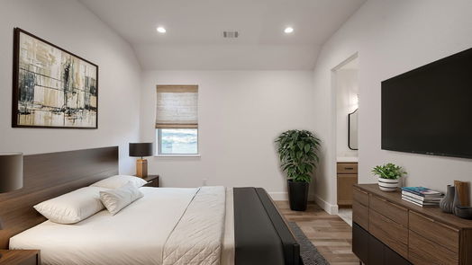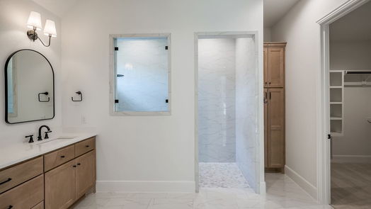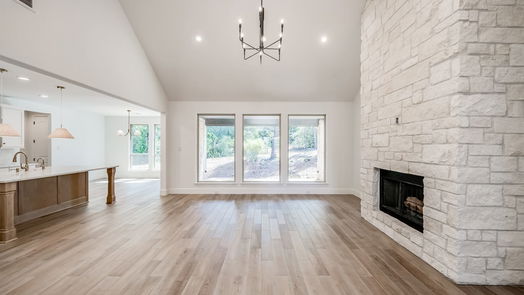 Fully custom home that is located on a .44-acre cul-de-sac lot with no rear neighbors, offering enhanced privacy. It boasts numerous upgrades with an open layout that is perfect for entertaining. The A-frame living room, highlighted by a wood beam, features a Blanco Chop stone fireplace stretching from floor to ceiling. The gourmet kitchen comes with quartz countertops, elegant cabinetry, and KitchenAid appliances, including a farmhouse sink, stylish tile backsplash, and pot filler. Throughout the home, you'll find stunning herringbone & wood-like tile. Custom features include solid core doors, double mahogany front doors, and upgraded lighting. Each bathroom is finished with custom tile, floor-to-ceiling surrounds, and premium upgrades. The home office is ideal for remote work or as a flex space. The primary suite offers a luxurious bath with dual sinks, a walk-in shower with dual rain heads, and two custom closets. Backyard with a covered patio that overlooks the serene reserve.