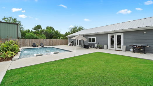Fly on home to Sport Flyers Estates! Sport Flyers Estates is a residential aviation community located in Brookshire, Texas, only 15 minutes from Katy & about an hour west of Houston. This one-of-a-kind property features its own private 60'x60' hanger w/guest quarters, a 3-bedroom 2.5 bath custom built home & a PebbleTec inground pool w/waterfall feature! Upon entry into the home, you will be greeted by a sprawling open concept floor plan, a spacious living room w/vaulted ceilings & recessed lighting, & a large island kitchen boasting quartz countertops and stainless-steel appliances. The primary bedroom offers a large walk-in closet, beautiful French doors opening up to the back patio, & a private ensuite bathroom with luxurious soaking tub & separate shower. 2 secondary bedrooms provide plenty of space for family or out of town guests! Enjoy your morning coffee on the back patio while overlooking the pool or spend your evenings with your eyes on the sky enjoying the aerial activity!