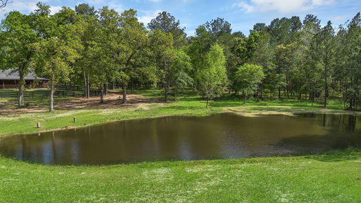 Unrestricted 15 acres with a pond, horse barn, and custom log cabin in Magnolia.