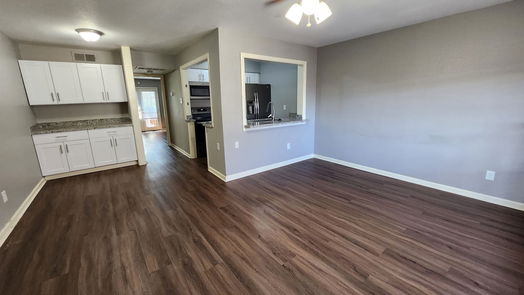 LEASED month to month FOR $1100 *** Complete remodel job. Kitchen it's been updated with new cabinets, fancy granite, deep single sink bowl and GE slate appliances. wood looking floor throughout. Walk in shower with shower door tempered glass, modern bath vanity and Italian 'Carrara' marble rectified tile. It comes with new LG stack-able washer and dryer. The Unit has 2 balconies and 1 assigned cover parking space. The community is very small and quiet with a pool. Located in the 610 and 290 intersection, just 10 minutes away from the Galleria area. HOA FEES COVERS 'ALL BILLS PAID'
