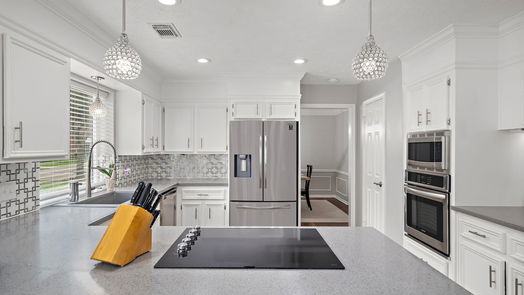 Marvel at this brick-style gem in the master-planned community of First Colony! Thoughtfully remodeled in 2020, this home flaunts a functional layout with seamless indoor/outdoor flow & a private backyard complete w/ a temperature-controlled screened patio plus a heated gunite pool w/ spa & PebbleTec shell embellishments. Step into the spacious living area boasting high ceilings, a brick-accent wall w/ a fireplace & wood floors throughout. The kitchen is fitted w/ quartz counters, SS appliances, a breakfast bar & pantry. Retreat in the primary suite w/ tray ceilings & an ensuite bath w/ dual sink vanity, jetted tub, glass-enclosed shower, skylights & walk-in closet. Find the ideal blend of style & function w/ a new Ventizio cooling system, LVP office flooring, hard-wired cameras, insulated glass windows, new shingles, an HVAC system (2020) & more! Zoned to top Fort Bend ISD schools w/ great amenities including pool, lake, sports facilities & trails, plus minutes from First Colony Mall!