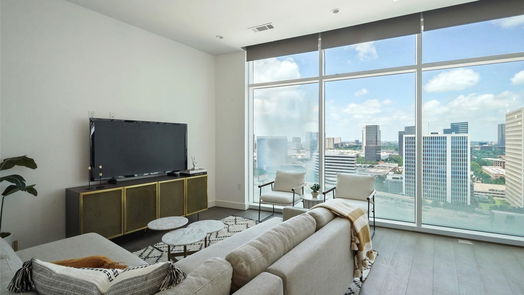 Lowest price per SF by far!!! Sweeping views of the Houston skyline from the 17th floor of the Arabella, this corner unit features walls of glass, Galleria balcony views, marble countertops, and hardwood floors. The kitchen includes Stainless appliances, a built-in refrigerator,and Kitchen Aid wine frig. The owner has also installed power shades. Full-service 24-hour concierge and valet parking, a starlight pool & hot tub, bar & palm deck