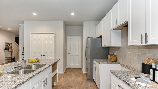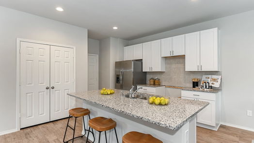 The Chelsey floor plan is a must see. The downstairs is a very large open space perfect for gathering around the gorgeous Black Pearl Granite Island. The stainless appliances accompanied by the 42" White Cabinets and backsplash contrast perfectly with the sparkling granite. The luxury vinyl plank in Driftwood is individually laid piece by piece. The durability is excellent for high traffic and it looks and feels like real wood. Upstairs awaits the huge primary suite measuring 16'x12'. 3 other rooms with large closets surround a gathering area upstairs along with the laundry room conveniently located on the same level. The view of the community is gorgeous from this location. There is no back neighbor, this home backs up to a green space. This is a perfect home for elegant entertaining.