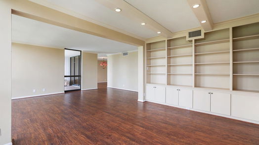 Coveted location move in ready unit on floor 9 with highly desirable East facing floor to ceiling panoramic views. 2/2 with extra flex space for home office / storage. Spacious Family Room and Den open concept plan for easy entertaining of family and friends with wall of built ins. Light filled Dining Room opens to private terrace for relaxation while taking in glorious views. Private Primary Bedroom suite with walk in closet and Primary Bathroom with updated walk in shower/bench, bidet and Kohler fixtures. Secondary Bathroom with tub/shower combo and marble counters. Kitchen boasts recent GE profile microwave and range with marble counters, glass front cabinets and Kohler porcelain double sink. Hunter Douglas cellular window coverings throughout. 2 assigned parking spaces with controlled garage access. Indulge in the convenience of residing minutes from Memorial Park and numerous shopping options in an urban prime location with amenities of a sparkling pool, 24 hr concierge and more.