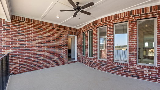 The double entry doors draw you into the fantastic foyer featuring double curved staircases and a dome ceiling flanked by a private home office and a spacious formal dining room. The open-concept design has windows galore with sliding doors to the patio. It combines the gourmet kitchen with under-cabinet lighting, a family room featuring 20-foot ceilings, and an open railing above the second floor. The breakfast area boasts the perfect meeting space for guests. This home offers a generational suite as well for any member. Upstairs, you can continue the entertaining to the spacious game room or watch your favorite shows in the media room, complete with a tray ceiling and rope lighting. Relax your afternoon away on your covered balcony or cook for guests on your outdoor kitchen located on the TX patio while you view the lake right off your yard.