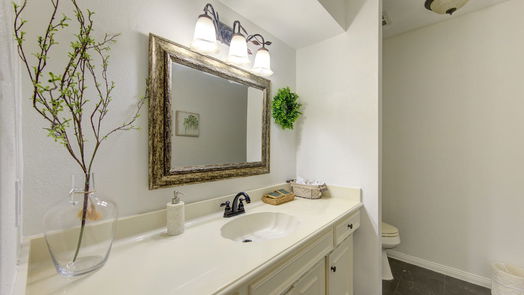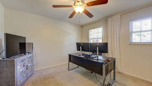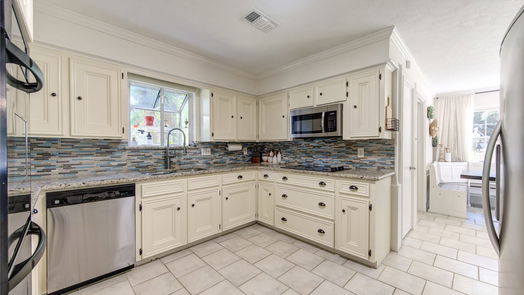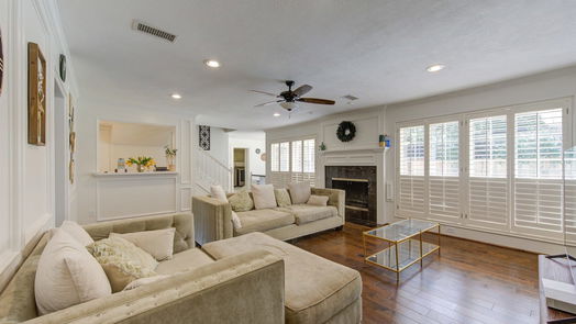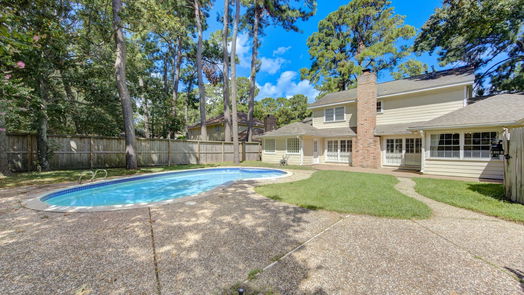 Welcome to this amazing home situated on a corner lot with mature trees in sought after Huntwick Forest. The back wall of this home is full of windows with a wonderful view of the beautiful backyard and sparkling salt water pool. Handscraped Hickory flooring, double pane windows w/plantation shutters, & granite counter tops in kitchen. This home was built for entertaining inside and outside! Primary bedroom is very spacious with en-suite large bath with jacuzzi tub, separate shower and two walk in closets, with a private door to the backyard and pool area.