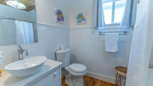 Come check out this darling beach retreat nestled in Midtown. Charming inside with roomy layout. Reclaimed oak hardwood floors throughout, custom cabinetry and quartz countertops. Clawfoot tub to soak away the day! Artsy light fixtures throughout home. Replumbed, updated electricity, low-e windows and Hardi siding. Newly added backyard retreat with hot tub. Currently a vacation rental. Located in Flood Zone X, a definite plus! Turnkey property conveys furnished.