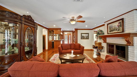 Custom home sitting on 1.6+ beautifully landscaped acres! Main home boasts gorgeous cherry hardwood floors throughout main areas on first floor; family room with FP, remote blinds, bar with wine safe, ice maker and fridge - this home is made for entertaining! Kitchen features granite counters, dual microwaves, 2 sinks SS appliances and walk in pantry. Poolside media room with Sony projector and 95" projection screen with 1/2 bath! Jr owner's retreat downstairs with full bath; upstairs owner's retreat is spacious with FP, balcony overlooking grounds, coffee bar, bonus room and direct access to upstairs utility room! Spa-like bath is HUGE with separate vanities, jacuzzi tub and shower. Pool/spa and multiple covered areas and courtyard for entertaining; 1st and 2nd floor laundry rooms; Newly renovated 1 BR 890 SF guest apartment is stunning and provides wrap around balcony. Four car garage plus separate golf cart garage; water softener; whole house generator; NEVER flooded! WATCH VIDEO!