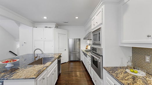 Breathtaking (and rare) floor to ceiling windows, an oversized kitchen with a large island, two fireplaces, a ground level outdoor space, a working elevator, and private fourth floor patio let this free standing home in Rice Military stand in a league of it's own. If you've been house hunting in the area for any amount of time, you'll know this one is special. Being impeccably maintained, having updated interior paint, and matching quality hardwood floors throughout most spaces - this home is move-in ready. Room sizes approximate, buyer to independently verify. During Beryl:dry, undamaged, and power back the day after the storm