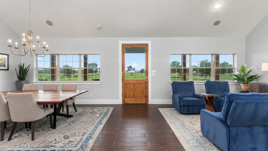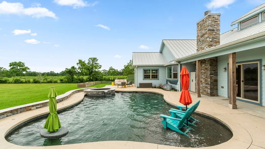 Fabulous, 4 bedroom, 3 full bath w/ 2 half bath, "Smart Home" with workshop located on 4.996 acres in the quiet, country subdivision of Mary V. O'Donnell in Brazoria County. The ceilings are high with wood beams and clerestory windows and the wood-look tile flows expansively throughout the first floor. This beautiful home offers an open floor plan with a large greatroom with fireplace, formal dining area, conversation area, study, upstairs gameroom and home theater. The chef's kitchen is amazing with marble countertops and top-of-the-line appliances including 8-burner Viking cooktop and double Bosch ovens. The primary retreat is fabulous with a large entry room and beautiful ensuite bath. 3 secondary bedrooms are all spacious. There's an outdoor kitchen with huge covered patio, cabana bath, fire pit and beautiful pool with sundeck and spa. If you are wanting to experience quiet, country living in a modern home with all the bells and whistles, then this is it! Welcome home!