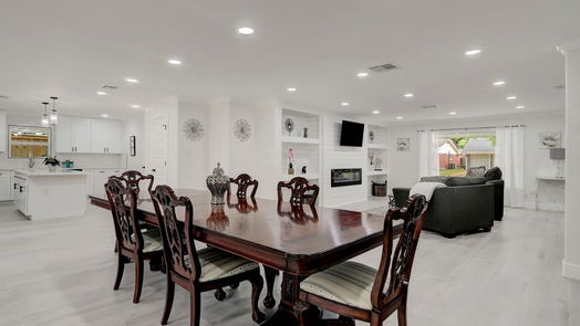 2024 Newly renovated 3 bedroom 2 bathroom home with open concept living room, dining room and kitchen combination. The home has a large eat-in kitchen with all appliances, luxury cabinets with soft close doors, large 9ft island overlooking the living room and dining room area. Large electric fireplace recessed in white shiplap. The beautiful tile floors flow throughout the house. Crown molding, luxury finishes. Primary bath has a top of the line glass enclosed walk-in shower with multiple shower heads and a separate hand wand.