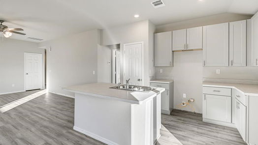 The Cooper Floorplan by Rausch Coleman Homes-8’ ceilings, Open Concept, luxury vinyl flooring in living and wet areas, kitchen island, 30” upper cabinets, black Appliances electrical stove, tub/Shower in Primary bath. ceiling Fan in living area, Low E windows, gas water heater, gas heaters and much more!