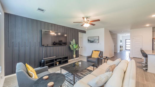 This property is a solar-powered home that features a mud bench, an accent wall in the family room, Granite countertops in the Kitchen and baths, Herringbone Backsplash, 42" Light GrayKitchen Cabinets, Stainless Steel Appliances that include Whirlpool 5 burner gas range, Amana refrigerator, washer and dryer, a microwave oven that is vented outside and dishwasher, 6x24 Wood Tile throughout to include study, 2" Blinds, Elongated toilets, tankless water heater, Mahogany front door, Garage Door Opener, Freezer plug at the garage, Covered Patio with Ceiling Fan and Gas Stub Out, full sod front and back, Sprinkler System, Front gutters, Covered Patio, and a study.