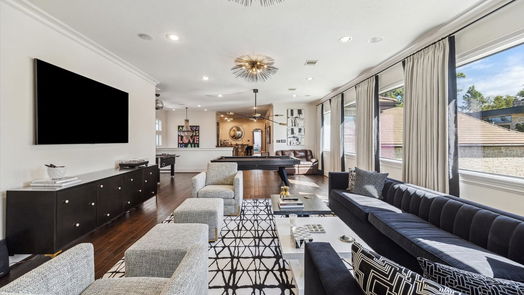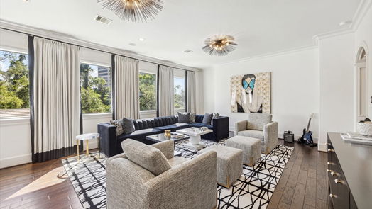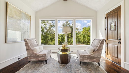 A remarkable Memorial Park retreat offering resort-style amenities situated on nearly half an acre of majestic grounds backing to the Hogg Bird Sanctuary with the natural bayou border beyond. Impressive interiors offer open-concept living spaces enhanced by substantial ceiling heights, Segreto plaster surfaces with natural stone accents, and walls of glass overlooking the sublime setting with multi-level swimming pool and sizable lawn. Fabulous Formals. Gourmet Island Kitchen with informal dining area opens to the Great Room with wet bar and wine vault. Primary Suite down with separate sitting area and luxurious bath with morning bar and separate custom closets. Loggia with outdoor fireplace connects to a ground-level Guest Casita. 3 Guest Suites up with Game Room + Media Room. Elevator capable. Three-car attached (tandem) Garage. A serene setting on a coveted cul-de-sac with access to the improved amenities of Memorial Park and moments from Downtown Houston.