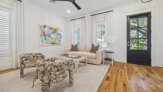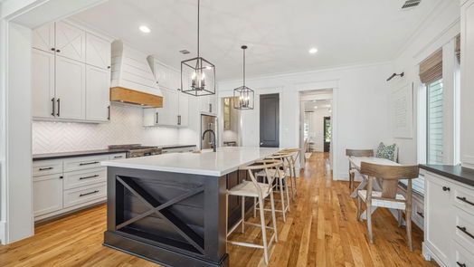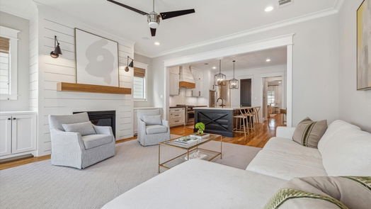 Stunning home in the sought-after Sunset Heights, featuring 3 bedrooms and 2.5 baths. This elegant residence includes formal living and dining rooms, a dry bar, and a butler's pantry, leading to a spacious family room complete with a cozy fireplace and built-in shaker cabinetry. The gourmet kitchen boasts a large island and breakfast area, outfitted with stainless steel appliances, quartz and granite countertops, and ample storage space. The luxurious master suite offers vaulted ceilings, access to a double gallery porch, and a spa-like bath with a soaking tub, dual sinks, and a glass-enclosed shower. High ceilings, white oak flooring, and detailed moldings enhance the home's charm. Outside, enjoy a well-manicured front lawn with turf and beautiful patios, perfect for outdoor entertaining.