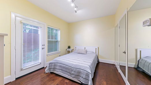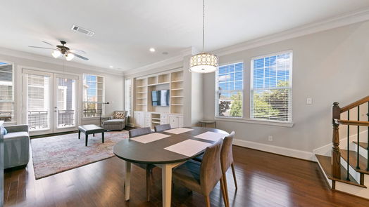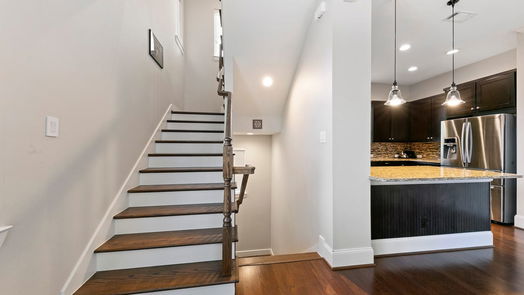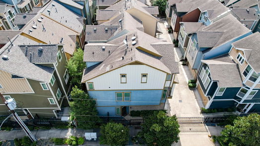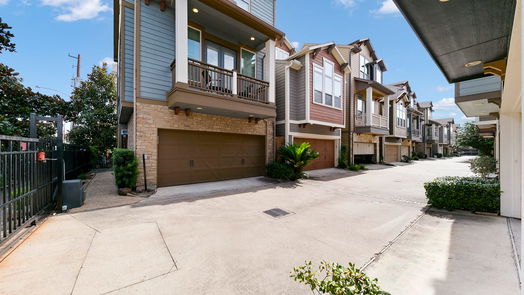 Experience the best of Houston Heights living in this corner home in a gated community. At the intersection of the popular M-K-T and Nicholson Hike and Bike trails and just steps from Lawrence Park, this 3-bed, 2.5-bath home offers easy access to Downtown and the White Oak/Buffalo Bayou Trails. Home spans 3 levels and boasts wood floors throughout. Open kitchen features granite counters, a custom tile backsplash, stainless appliances, and a breakfast bar. The living space is enhanced with built-in cabinets and a home theater system, complete with surround sound ceiling speakers and wiring. Enjoy the south-facing balcony for plenty of natural light, and the fenced yard with a patio provides a great outdoor space for pets and relaxation. The garage includes overhead storage racks for added convenience. With private gate access and a gated driveway, this home ensures both security and privacy. All within walking distance to fantastic shopping and restaurants at M-K-T Heights.
