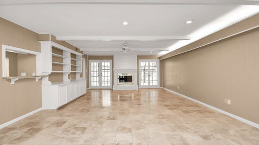 This is what you've been waiting for! A charming & classic Sugar Creek 1 story in Sugar Land. Located on a quiet cul-de-sac street in the heart of the neighborhood, the soft midcentury exterior of this well-maintained property has max curb appeal. Enter the light & bright home to find a traditional & functional plan w/recessed LED lights, updated kitchen (stainless appliances, gas cooktop, granite), prep sink & lots of natural light! Gleaming travertine floors thru main living spaces, huge living room w/custom cabinetry, fireplace & French doors leading out to sunroom which overlooks the lush backyard. Lots of storage in this thoughtfully planned home. Primary suite accesses the peaceful backyard via French doors - a perfect spot to add a small patio! En-suite primary bath features double sinks, custom built dresser, double closets & updated frameless glass shower. This delightful home has it all & is move-in ready. Low taxes & convenient to schools, restaurants, retail, 59S & Hwy 90.