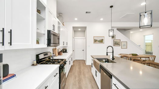 Modern two-story home with bright living spaces and a stylish kitchen in Houston.