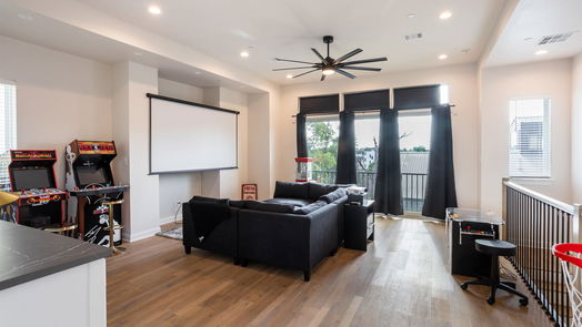 PROPERTY IS BEING SOLD WITH ALL FURNITURE, ELECTRONICS, AND ACCESSORIES PICTURED. 4 story home with ELEVATOR!! Ideally located on wide cul-de-sac street with plenty of street parking. Multiple restaurants and area amenities within walking distance. First level has large welcoming entry with one bedroom and ensuite bathroom. Second level provide large entertaining kitchen with 2 inch quartz countertops, gas Jennair cooktop at island, double ovens, and stainless refrigerator. Kitchen opens to living area. Third floor is home to the oversized primary bedroom, en-suite with luxurious walk in shower and soaking tub. Fourth floor features an enormous game room, dry bar, and 3rd bedroom with en-suite. Wood flooring throughout, designer finishes, and gorgeous views from both balconies. Great opportunity in a prime location with quick access 610, I 10, the White Oak Bayou Hike & Bike Trail, M-K-T shopping & dining center, and the renowned Memorial Park & Golf Course.