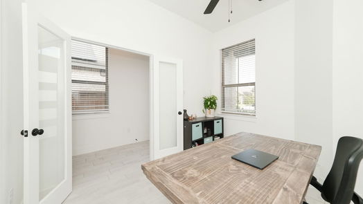 This exceptional home seamlessly combines comfort, style, and functionality, ideal for today’s lifestyle. Featuring 3 bedrooms, 2 bathrooms, and an additional office space, it offers plenty of room for work, relaxation, and hosting. The open-concept layout enhances the home’s airy feel, with high vaulted ceilings and abundant natural light creating a warm, inviting atmosphere. The modern kitchen is a chef’s delight, showcasing stainless steel appliances, sleek gray cabinetry, a large island with seating, chic pendant lighting, and a walk-in pantry for ample storage. The private primary suite provides a luxurious retreat, complete with a separate shower and a soaking tub. Two well-appointed secondary bedrooms are thoughtfully located near a shared bathroom, perfect for family or guests. Katy ISD school district.