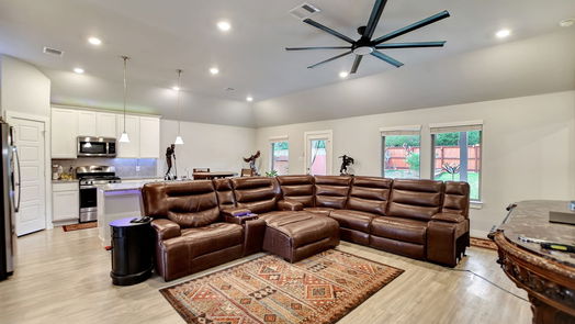 Welcome to your new home at 948 Pickering Oak Row in the heart of Magnolia! This stunning single-story home floor-plan that boasts 3 bedrooms, 2 full bathrooms, and a 2-car garage. The open-concept living space includes the family room, dining area, and kitchen. Enter your owner's suite through a private entry off the family room. The owner's bath retreat, complete with a walk-in shower, a walk-in closet, and an enclosed toilet area. Looking for even more space? Check out the upgraded extended back covered porch/patio - w/LED lights and an 84” porch fan —it's perfect for entertaining! Many upgrades throughout include, but are not limited to - a generator, stone/ landscape, camera system, french drain, and more! Stainless steel appliances, Washer, Dryer, and outdoor furniture/TV are included. This home is ready to accommodate your family's needs, a convenient location with quick access to Downtown Magnolia and the Aggie Expressway.