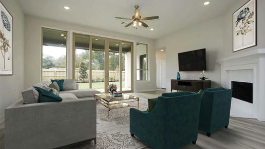 New construction with a stylish layout, featuring an entertainment room and cozy fireplace.