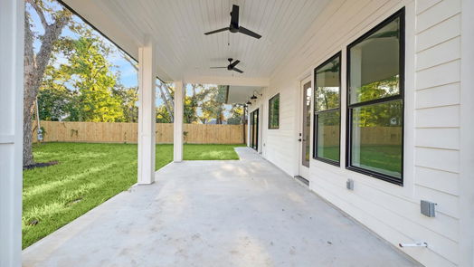 Modern farmhouse in Garden Oaks with open spaces, a huge yard, and stylish finishes.