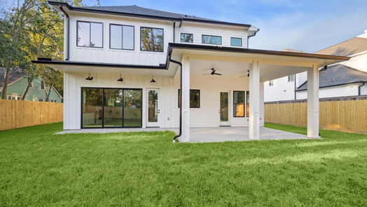 Welcome to 219 W 34th, a gorgeous modern farmhouse ready for move in Fall 2024. Located on an oversized lot in highly desirable Garden Oaks, this beautiful home will check all the right boxes. Open concept living area has tons of windows to allow for natural light to permeate the livings spaces. Spacious kitchen with large island, plenty of counter / cabinet space. 11 foot ceilings throughout first floor and primary suite. First floor guest suite is perfect as mother-in-law, guests or possible extra study. Study located in the front of the home with nice closet and could also be used as a bedroom. Retreat to the massive primary suite up with elevated ceiling, accent wall, walk-in closet. Primary bath features soaking tub and walk-in shower. Large game room upstairs and extra flex room for reading / study area. Two additional secondary bedrooms upstairs with en-suite bath. Backyard has more than enough room for a pool plus play area for kids and / or pets.