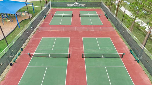 Stately Red Brick Custom Home on Over 1/2 Acre in Spring Creek Oaks Offers Outstanding Curb Appeal & Everything You Are Looking for in a Home with its Rich Hardwood Floors, High Ceilings, Custom Trim & Mouldings. Features Include Formal Living & Dining, Home Office w/Custom Built-Ins, Gas Log Fireplace in the Spacious Family Room Open to the Updated Kitchen w/Stainless Steel Appliances, Granite Counter Tops and Lots of Cabinets & Counter Space for Entertaining Family & Friends. Primary En-Suite Bedroom Down w/Bay Window Sitting Area & Luxurious Bath w/Frameless Shower, Double Sinks, Soaking Tub & 2 Walk-In Closets. 3 Generous-Sized Bedrooms, 2 Full-Baths & a Large Game Room Upstairs. Walls of Windows Overlooking the Backyard Oasis Showcasing a Sparkling Pool & Spa w/Rock Waterfall and HUGE Private Yard. True 3-Car Side-by-Side Garage & Sprinkler System. Great Community w/Multiple Tennis & Pickleball Courts, 2 Clubhouses, 2 Pools, Jogging Paths, Playgrounds, Soccer & Baseball Fields.