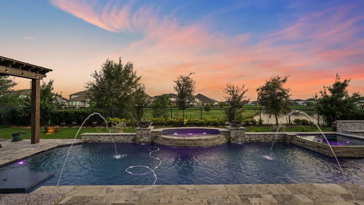 Welcome to this stunning residence in the highly sought-after master-planned community of Elyson. This luxurious Darling home features 4/5 bedrooms and 4 full bathrooms A Study, A Hearth Room, A Game room & Media room. This home has a secondary bedroom on the first floor, ideal for guests or multi-generational living. The heart of the home is the expansive kitchen, complete with a butler’s pantry and study Nook which is open to the family room, where a customized 200-gallon freshwater fish tank (included in the home) adds a unique touch of tranquility. Step outside to discover a resort-style backyard oasis featuring a sparkling pool, hot tub, outdoor kitchen, pergola, seating area, and gas fireplace. Enjoy breathtaking lake views and proximity to the Elyson community center, making this home an entertainer’s dream and a serene retreat. Please see the attachment for items sold separately.